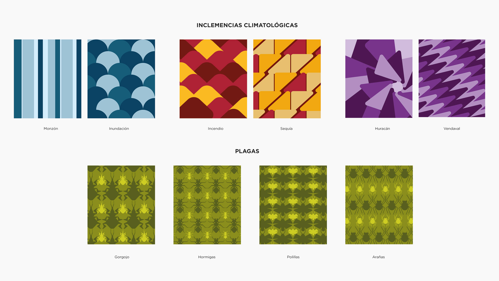 Las adversidades se ilustran a modo de textura siguiendo la línea gráfica del resto de ilustraciones. Llenan por completo el espacio lo que las convierte en otra categoría dentro de los grupos de cartas.